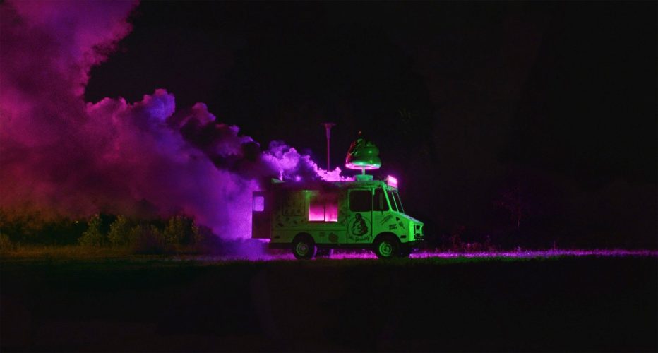 The lines of reality distort like white noise in I Saw The TV Glow, as the two teenage characters in The Pink Opaque are juxtaposed laterally with Owen and Maddy. Their battle with Mr Melancholia doesn’t end, with the show being cancelled on a cliffhanger. Just like their experience with gender dysphoria will never find a resolution, always hanging onto the flickerings of what could be without transitioning. Schoebrun, being trans and non-binary themself, is bringing their experiences into the toybox of creativity that is employed by the team within every aspect of the film. That the film deals with trans acceptance as much as it does the sense of internal trans rejection speaks to Schoenbrun’s own history of identity struggles with gender.