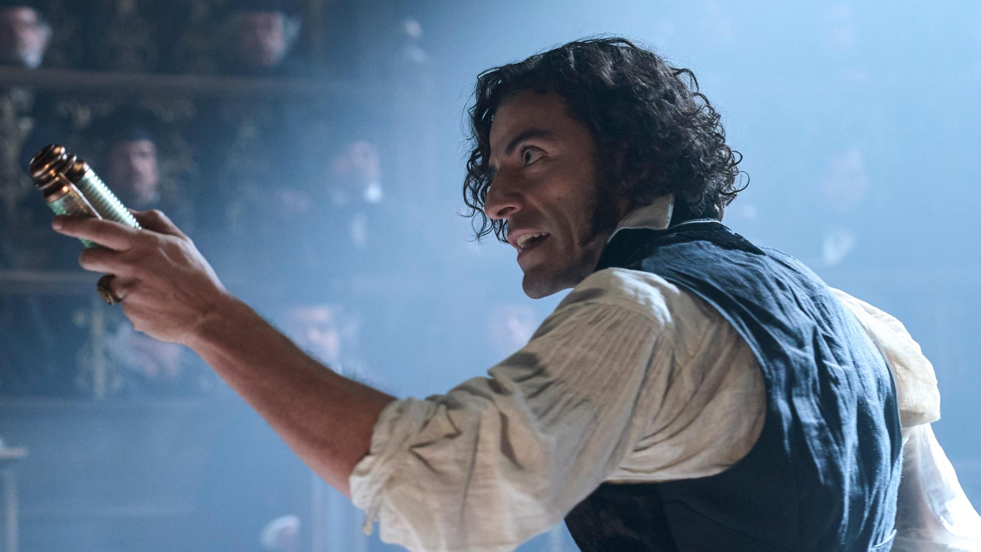 It is 1857, and amidst the freezing cold Arctic, a crew of Danish sailors battle to free their ship from the grip of ice when they find a seriously wounded Victor Frankenstein (Isaac) and bring him aboard, with an ominous hooded figure in relentless pursuit. While aboard the ship, Victor recounts his early life under the stern tutelage of his cold and distant father, Leopold (Charles Dance once again masterfully portraying the stern patriarchal figure), and how he followed in his father’s footsteps into the medical profession. Years later, during a very public display of his work, his peers are scornful and dismissive. Nevertheless, it captures the attention of the wealthy Henrich Harlander (Waltz), who promises Victor the requisite financial backing to continue his research. This culminates in the experiment, which brings the Creature (Elordi) to life. The success and joy with which Victor feels for his groundbreaking creation quickly dissipate, and soon the creator and the creation are on a collision course, with devastating consequences for them both.